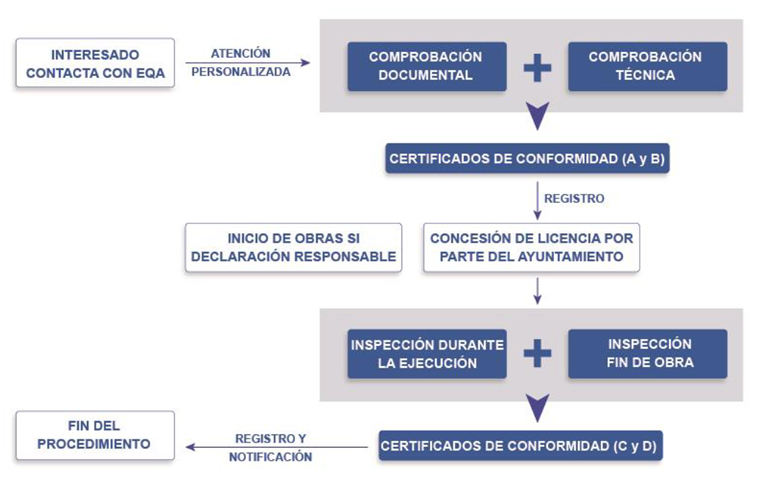 ECUV EQA es una Entidad Colaboradora Urbanística de la Generalitat Valenciana, según el decreto aprobado el 15 de mayo de 2020, 62/2020, que regula las entidades colaboradoras de la Administración municipal en la verificación de las actuaciones urbanísticas, conocidas como ECUV.